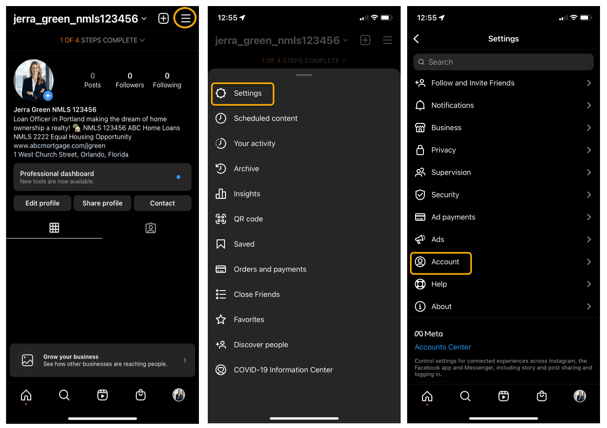 With Instagram's most recent updates, account owners can now convert their pages into business accounts through a simple setting update. These updates have great marketing benefits for business owners and entrepreneurs, Loan Officers included. Professional Account settings give access to insights about your followers, content performance metrics, new call-to-action opportunities, and more. For those looking to create an Instagram, learn more here. After creating a page, below are some simple steps to make the transition from personal to business easy: